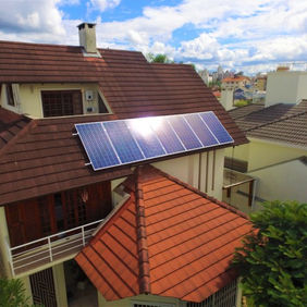 Projeto e instalação de sistema de microgeração de energia elétrica de potência 2,31 kWp, com 7 módulos e inversor de 3,3 kW.